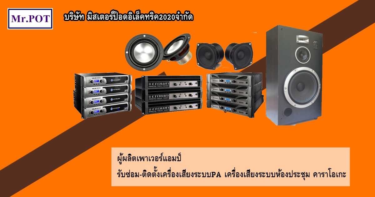 ผู้ผลิตจำหน่ายตู้ลำโพง ผู้ผลิตเพาเวอร์แอมป์ ขายดอกลำโพง เครื่องเสียงรถแห่ อุปกรณ์อีเลคทรอนิค อุปกรณ์ไฟฟ้า อะไหล่เครื่องเสียงกลางแจ้ง เครื่องใช้ไฟฟ้า รับซ่อม-ติดตั้งเครื่องเสียงระบบPA เครื่องเสียงระบบห้องประชุม คาราโอเกะ